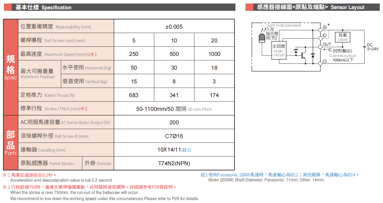 螺杆导程:5/10/20(mm)