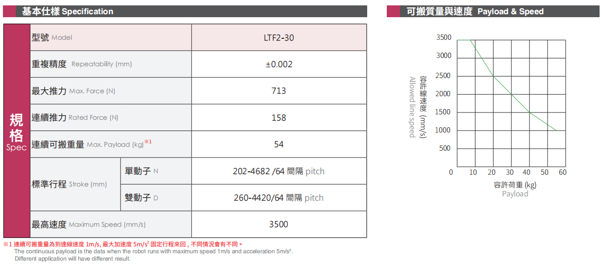 *连续可搬运重量为到达线速度1m/s